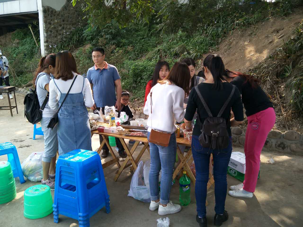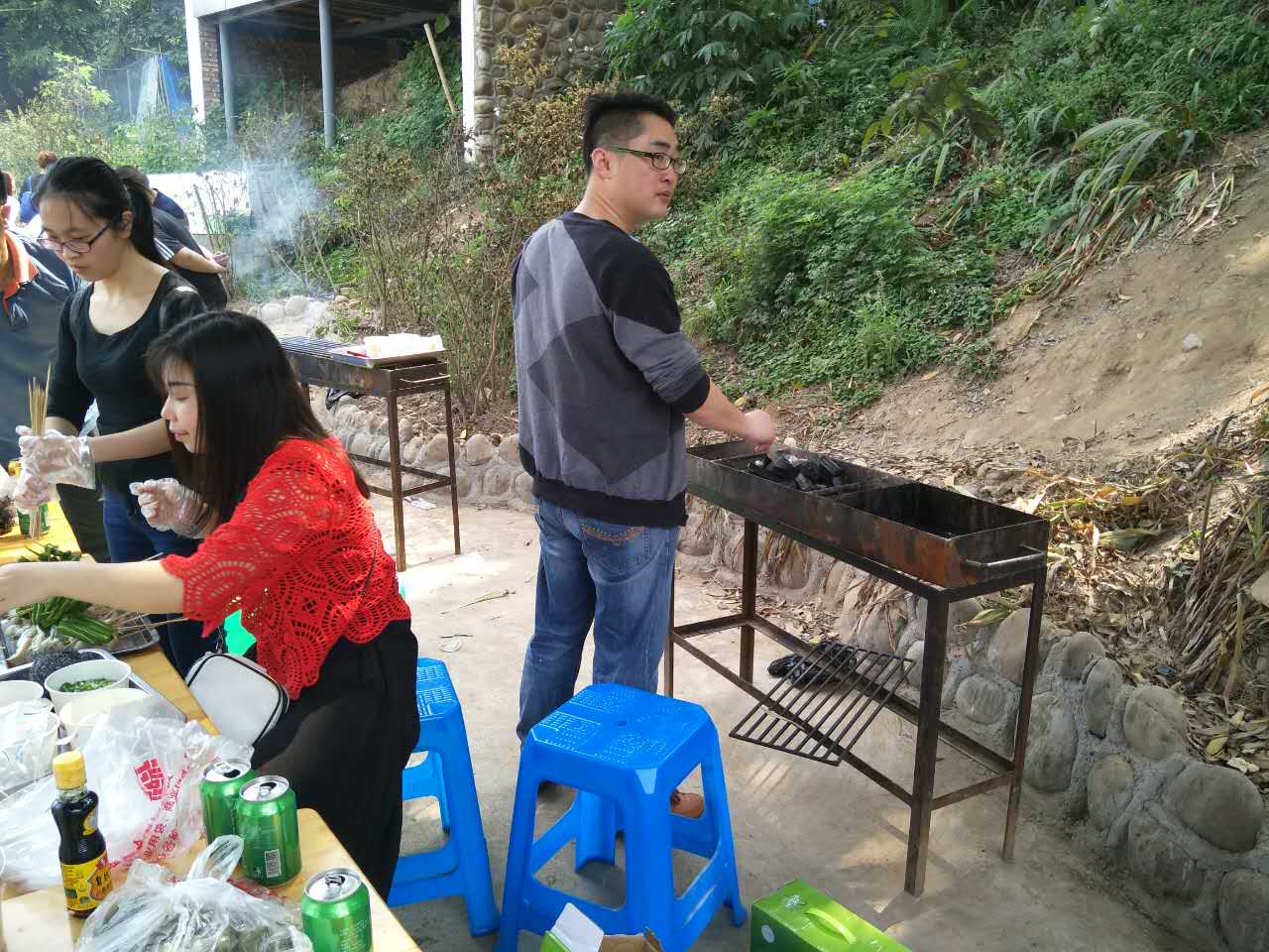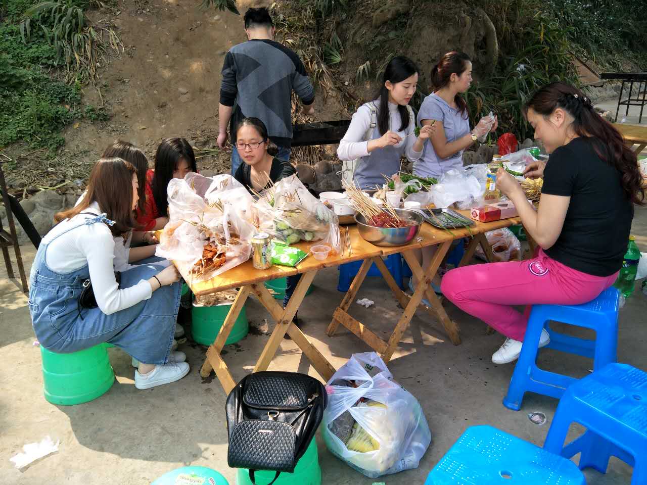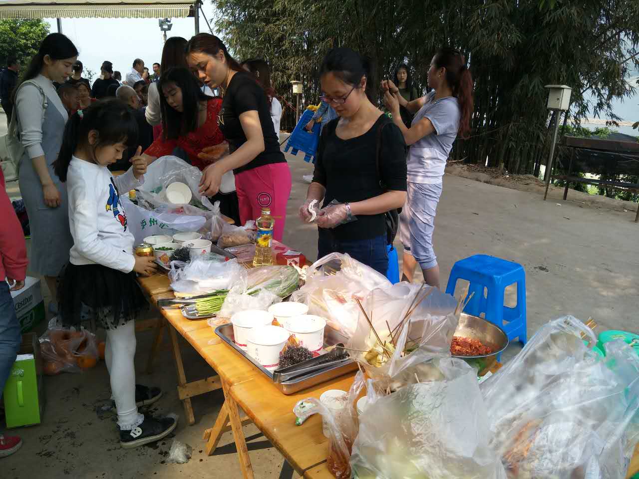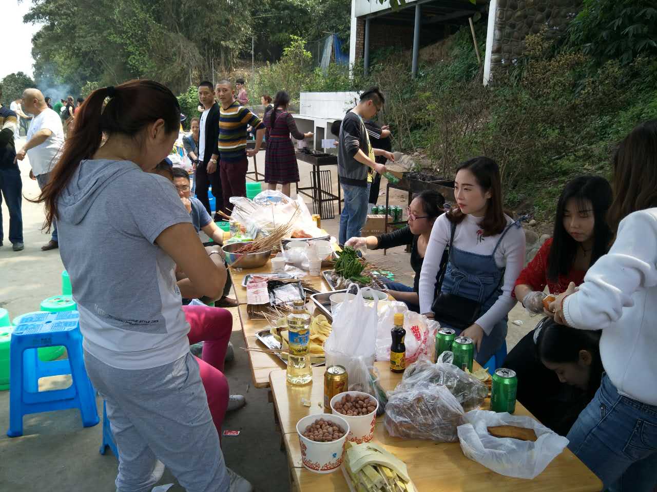 我們的活動地點(diǎn)在鄰江土寨,活動從早上十點(diǎn)開始,我們每個人都參與到其中,為燒烤食材做準(zhǔn)備。